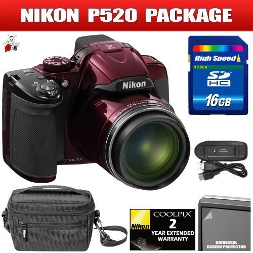 Nikon Coolpix P520 18.1 MP Digital Camera with 42x Zoom (Red) Package 2